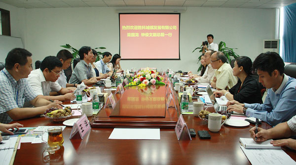 2014年8月12日,勝科城鎮(zhèn)發(fā)展公司副總裁梁國(guó)龍、鐘俊文在廣西自治區(qū)商務(wù)廳副廳長(zhǎng)韋朝暉、北海市副市長(zhǎng)石昆的陪同下赴中國(guó)電子北海產(chǎn)業(yè)園,就以北部灣智慧生態(tài)電子城項(xiàng)目為基礎(chǔ),雙方進(jìn)行戰(zhàn)略合作有關(guān)事宜進(jìn)行實(shí)地考察??疾炱陂g,自治區(qū)黨委常委、北海市委王小東書(shū)記進(jìn)行了親切會(huì)見(jiàn),北海市政府林山青常務(wù)副市長(zhǎng)帶隊(duì)與考察團(tuán)進(jìn)行了座談。