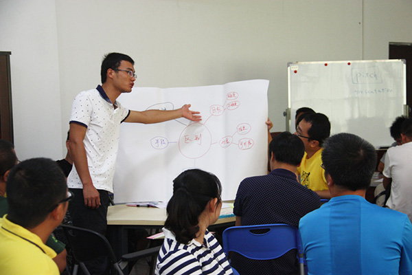 體驗(yàn)課由中國地質(zhì)大學(xué)博士、子謙國際創(chuàng)業(yè)教育學(xué)院首席專家、河北地質(zhì)大學(xué)創(chuàng)新創(chuàng)業(yè)教育學(xué)院執(zhí)行院長(zhǎng)與教學(xué)總監(jiān)朱燕空作為主講。體驗(yàn)課以新常態(tài)下雙創(chuàng)發(fā)展及市場(chǎng)拓展為背景,就創(chuàng)業(yè)思維內(nèi)涵、體驗(yàn)創(chuàng)業(yè)思維之旅、創(chuàng)業(yè)思維與管理思維對(duì)比,與學(xué)員們探討交流雙創(chuàng)發(fā)展之路,布置各小組“制造未來”任務(wù),設(shè)想了創(chuàng)業(yè)之路所遇到各種機(jī)遇與困阻。朱院長(zhǎng)表示,創(chuàng)業(yè)成長(zhǎng)期,大部分創(chuàng)業(yè)青年不缺乏目標(biāo)和想法,著實(shí)選擇一個(gè)有效的路徑去實(shí)現(xiàn),路徑有很多,每條路徑都代表著一種可能性,并且充滿了不確定性,關(guān)鍵在于如何找到有效的路徑,需要我們?nèi)バ袆?dòng)、反思和調(diào)整;而不是過多的詳細(xì)規(guī)劃,注重逐步執(zhí)行。面臨不確定性,朱院長(zhǎng)結(jié)合自身創(chuàng)業(yè)經(jīng)驗(yàn),與學(xué)員們探討分享創(chuàng)業(yè)新思維與企業(yè)管理模式,并運(yùn)用了大量案例對(duì)市場(chǎng)拓展做指導(dǎo)。課堂最后,朱院長(zhǎng)與學(xué)員逐個(gè)交流創(chuàng)業(yè)相關(guān)熱門話題。