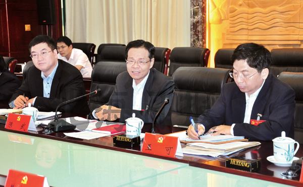 圖片說明:11月21日下午,陳武、王可、李延強(qiáng)同志參加自治區(qū)第十一次黨代會(huì)北海市代表團(tuán)全體會(huì)議,與大家一起審議彭清華同志代表中國共產(chǎn)黨廣西壯族自治區(qū)第十屆委員會(huì)所作的報(bào)告。北海日報(bào)記者 扶建邦 攝